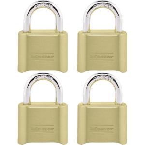 Master Lock Brass Combination Padlock for Indoor and Outdoor use with Resettable Combination for Gym Locker, Gate, Fence, or Shed Lock, 175D(4 Pack)