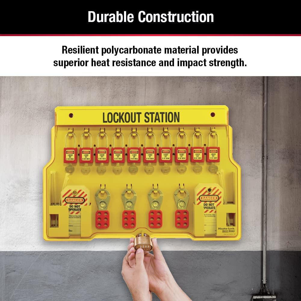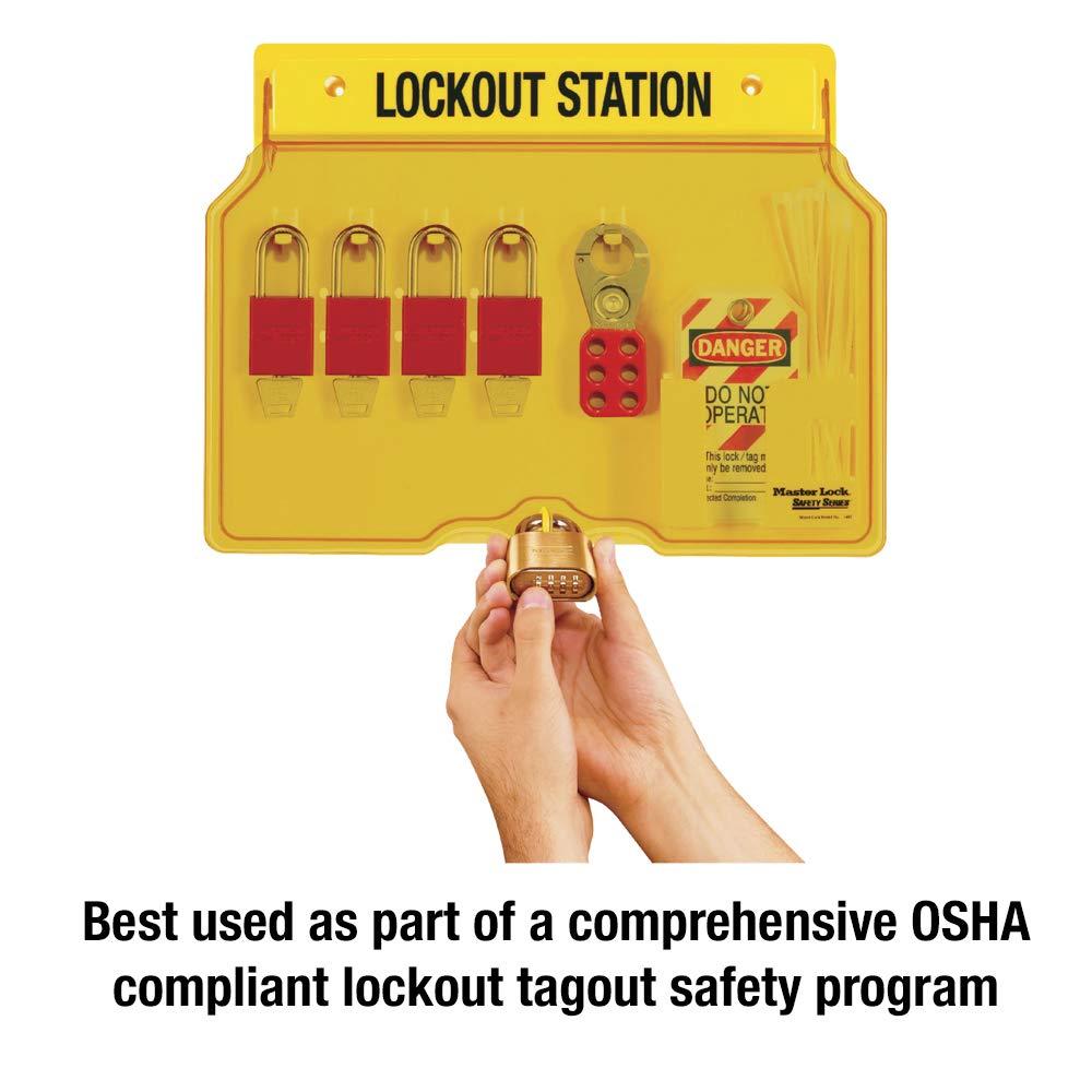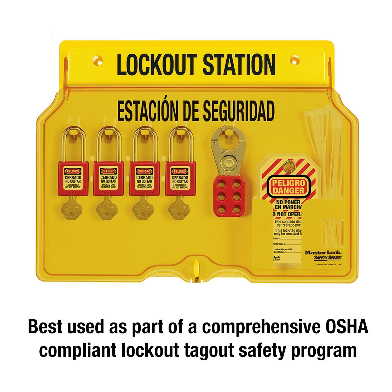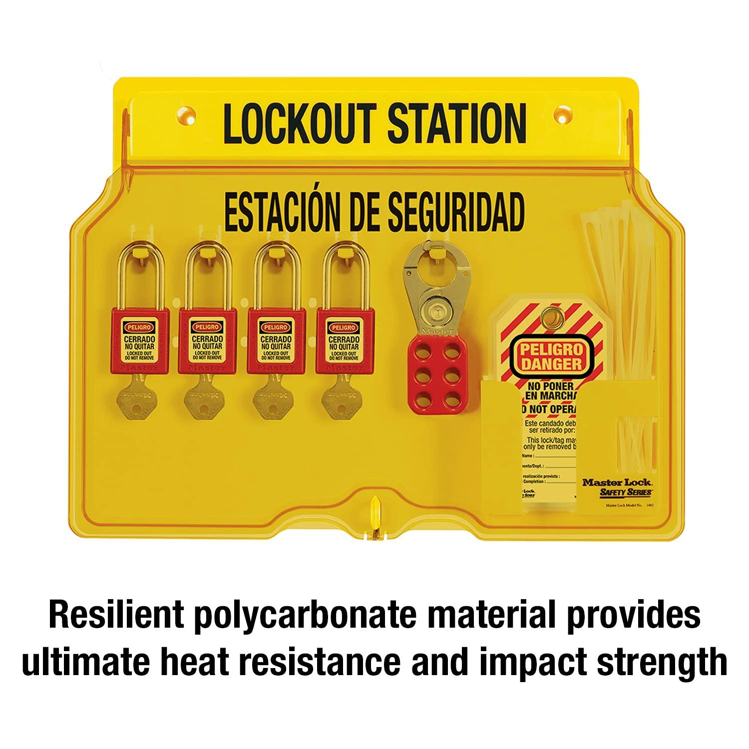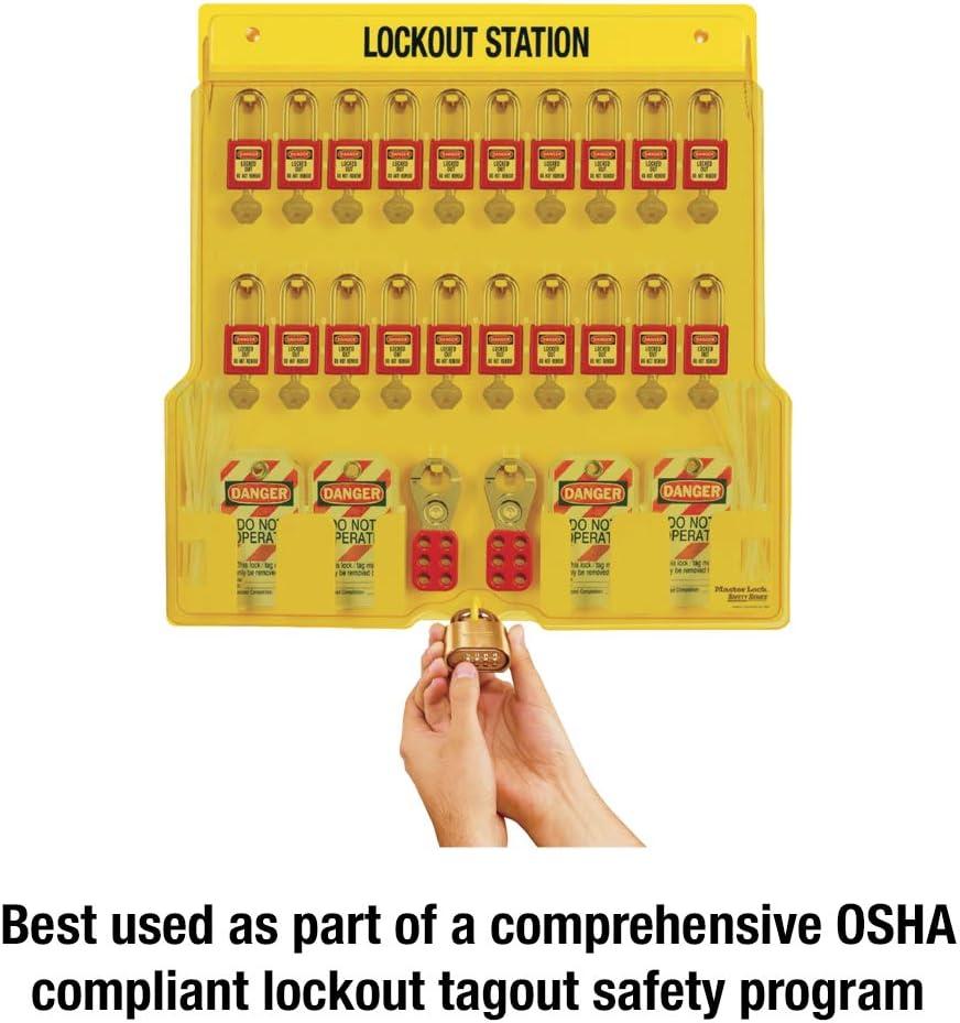 Master Lock 1482B Lockout Tagout Padlock Station , Yellow(Includes 4 Aluminum Padlocks)