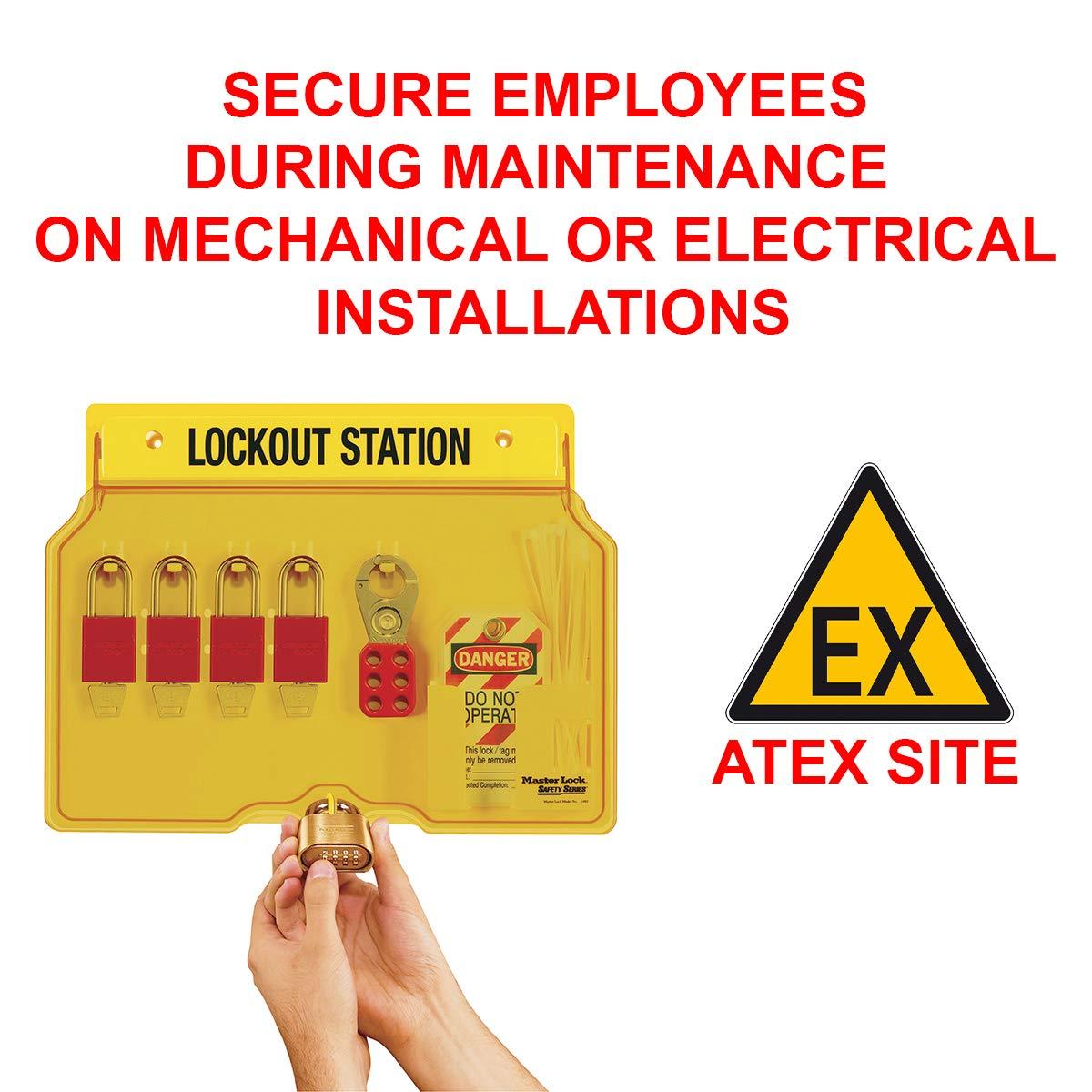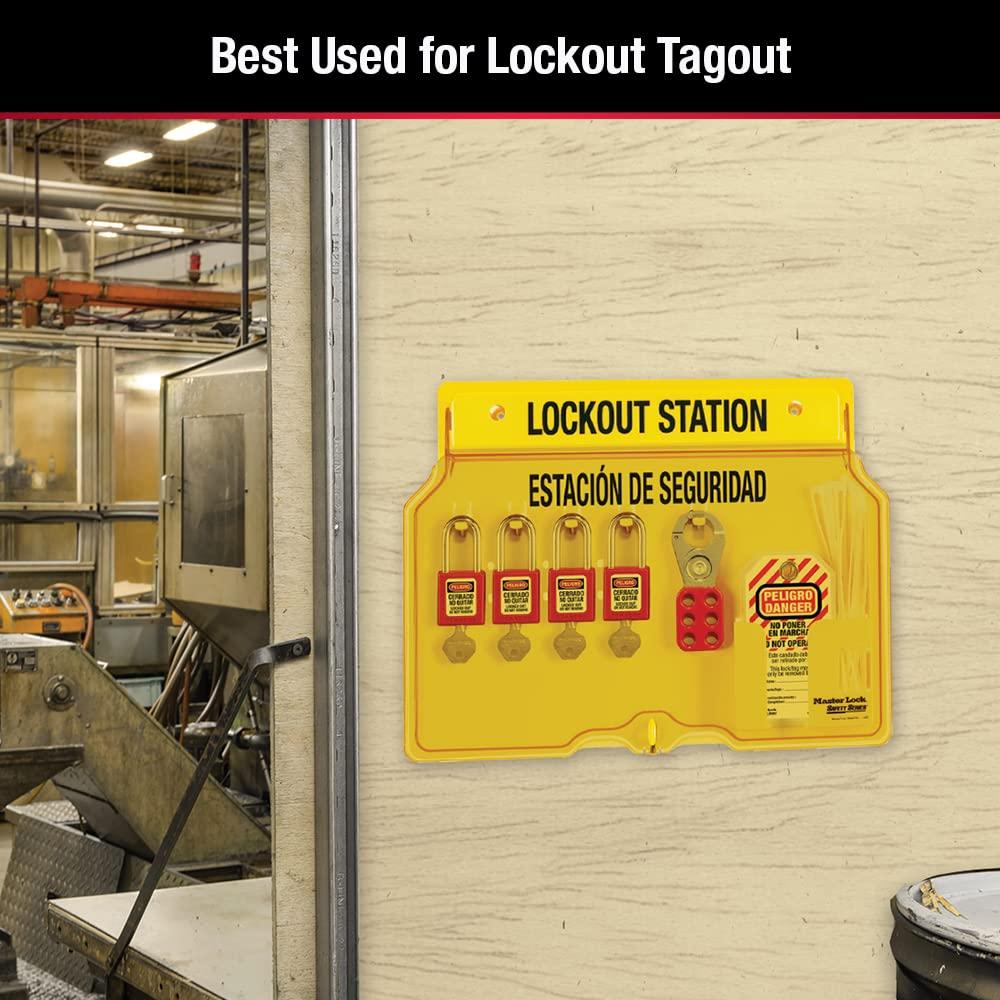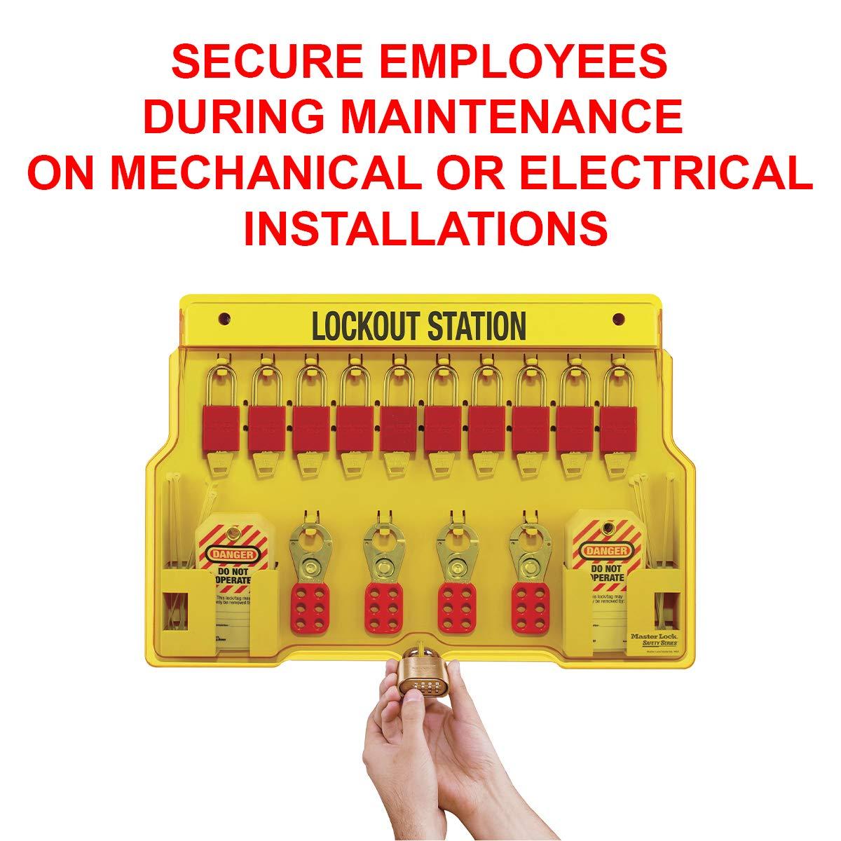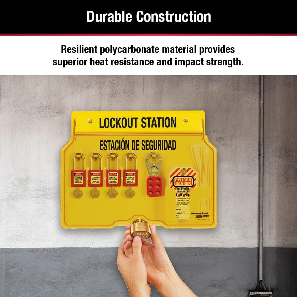 Master Lock 1482B Lockout Tagout Padlock Station , Yellow(Includes 4 Aluminum Padlocks)