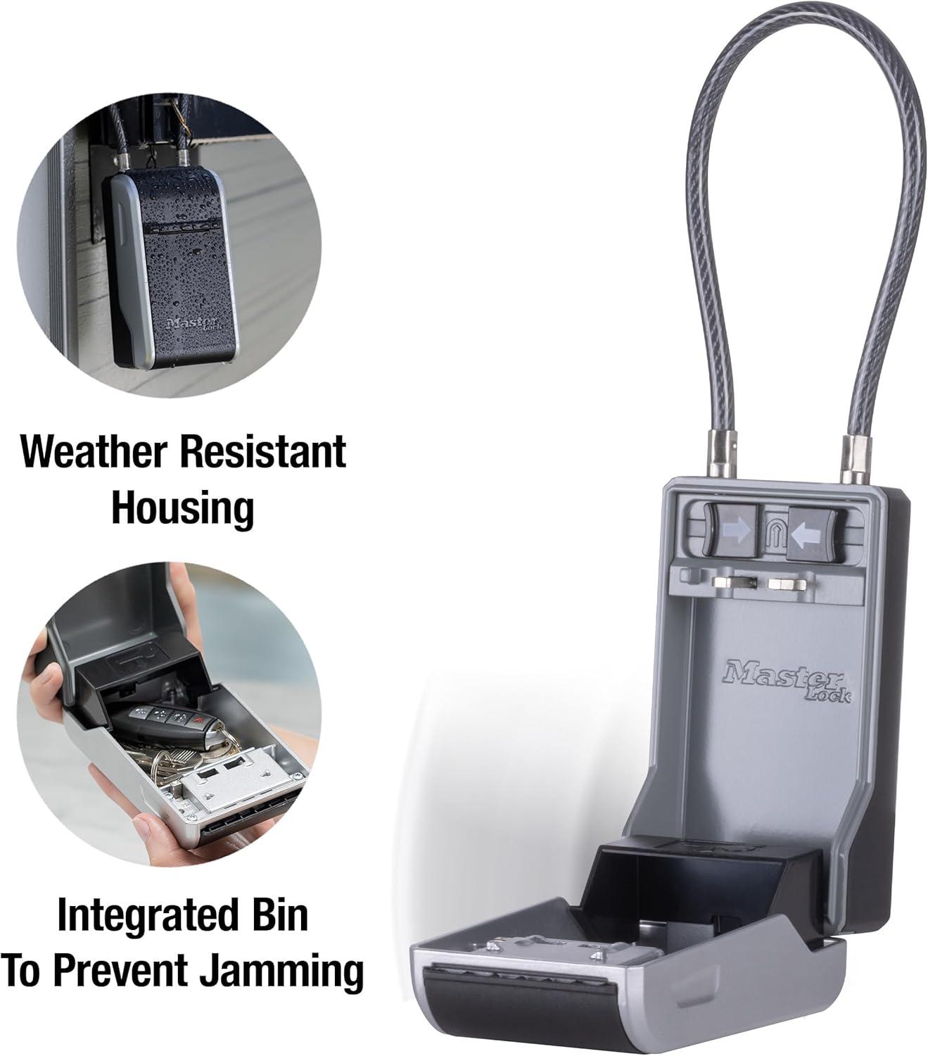 Master Lock Heavy Duty Wall Mount Key Lock Box, Outdoor Wall Mounted Lock Box for House Keys, Key Safe with Combination Lock, 5 Key Capackity, 5415EC(Wall Mount)