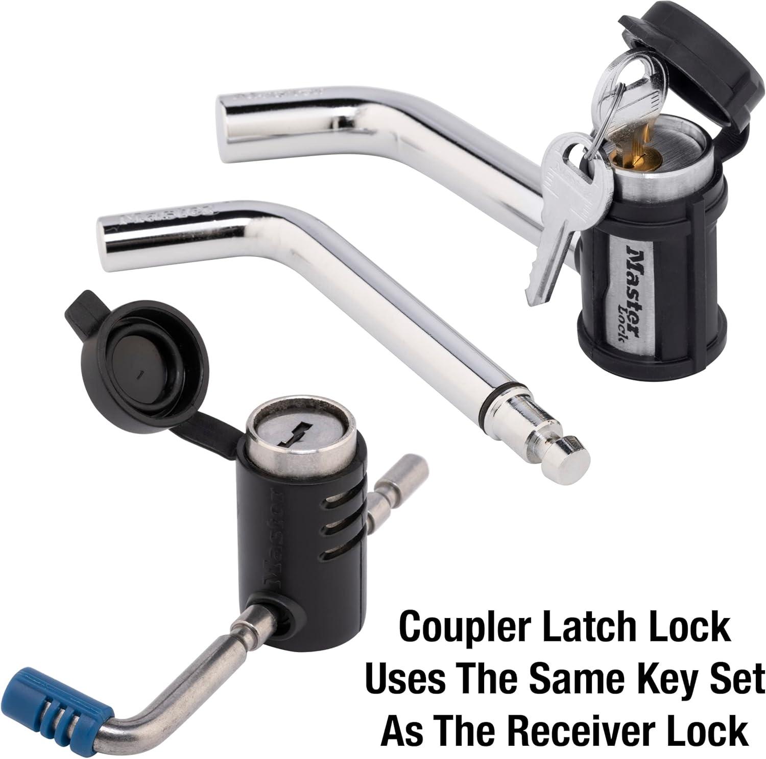 This Master Lock protects and guards against tow-away theft. The lock works when the trailer is either connected to the tow vehicle or when the trailer is unattached. The lock prevents the coupler latch from moving, therefore preventing either the coupler to be removed from the ball, or not allowing a ball to be placed into the coupler.
