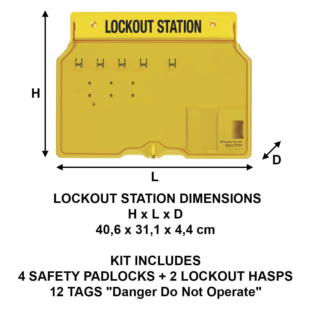 Master Lock 1482B Lockout Tagout Padlock Station , Yellow(Includes 4 Zenex Padlocks)