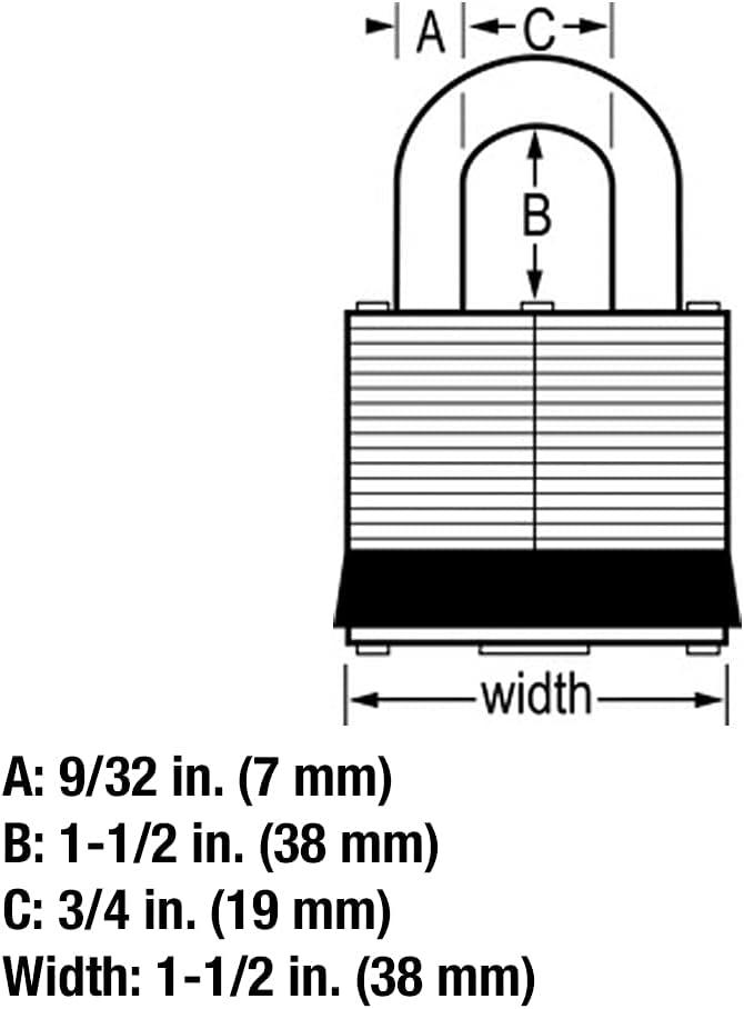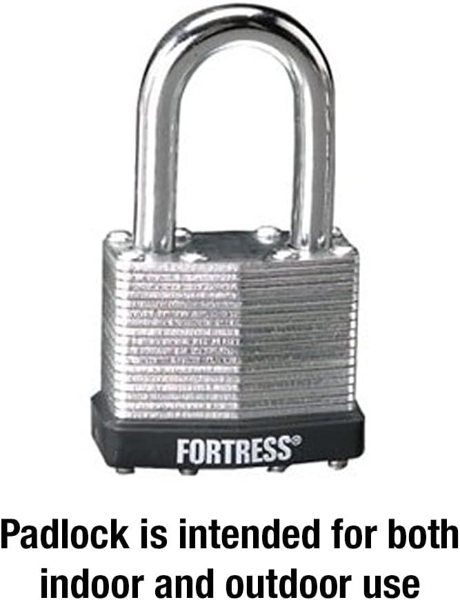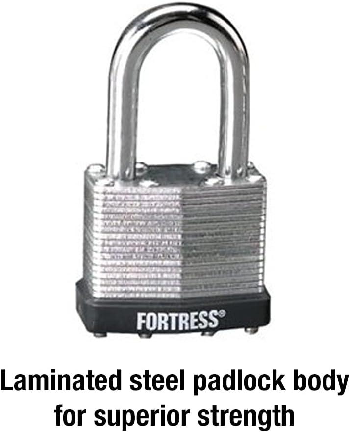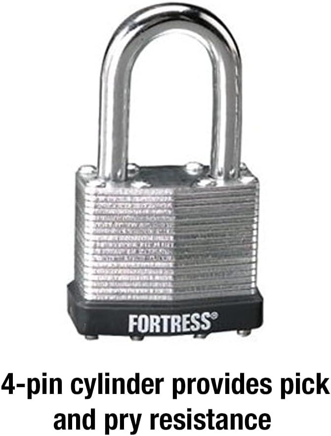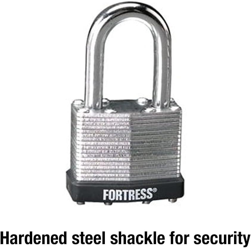 The Master Lock Fortress Laminated Steel Pin Tumbler Padlock is 1-1/2-Inch wide with a laminated steel body and four-pin tumbler security. It is keyed differently with a 1-1/2-inch shackle. Other features include case hardened steel shackles. Master Lock offers a full line of padlocks, chains, cables, and specialty locks for all of your needs.
