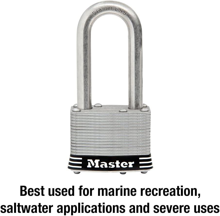 The Master Lock 1SSTRILH Stainless Steel Padlocks with Key feature a 1-3/4 in. (44 mm) wide laminated stainless steel body for maximum strength, reliability, and weather resistance. The 5/16 in. (8 mm) diameter shackle is 2 in. (51 mm) long and made of stainless steel, offering extra resistance to cutting, sawing, and weather. The 4-pin cylinder prevents picking and the dual locking ball bearings provide resistance against prying and hammering. The Lifetime Guarantee provides peace of mind from a brand you know and can trust.