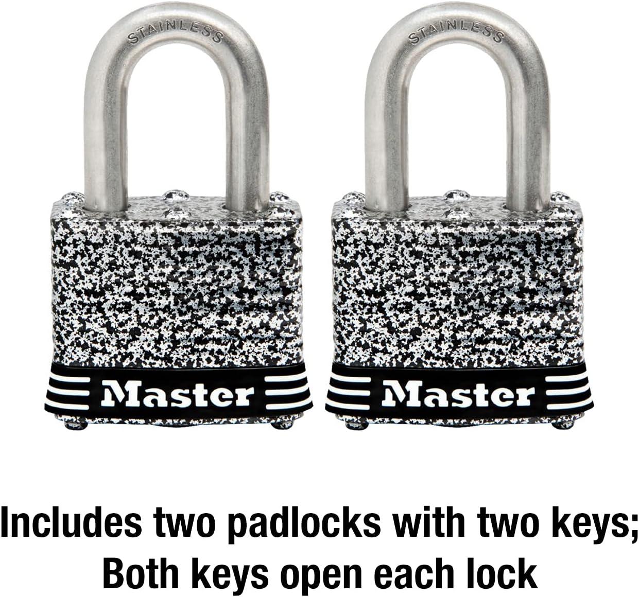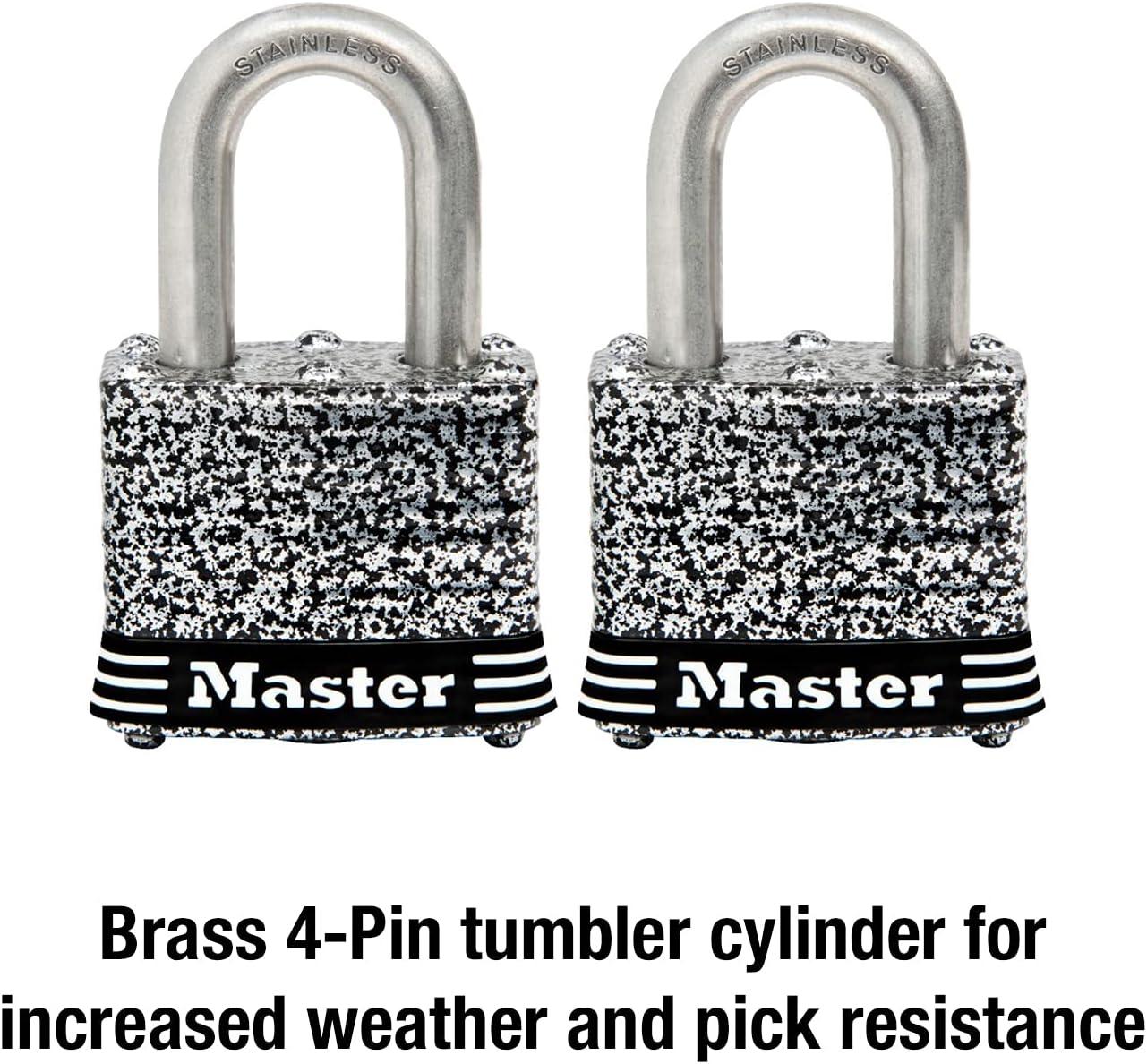 Master Lock 3SSQ Stainless Steel Outdoor Padlock with Key, 4 Pack Keyed-Alike(2 Pack Keyed-Alike)