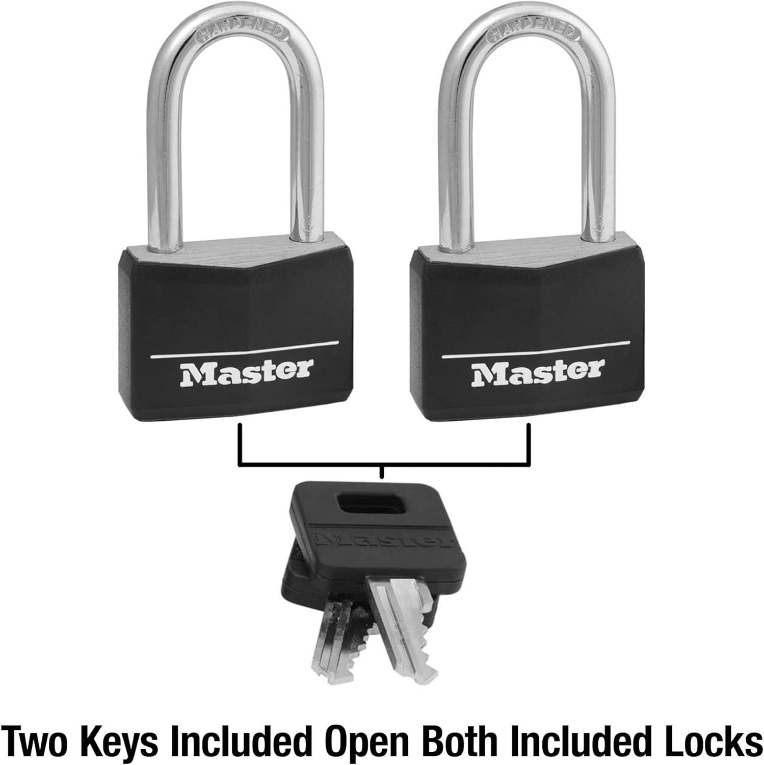 Master Lock Black Covered Aluminum Lock, Gym Locker Lock with Key, Outdoor Padlock with Long Shackle for Gates, Fences, Toolboxes, and More,141DLF(2 Pack)