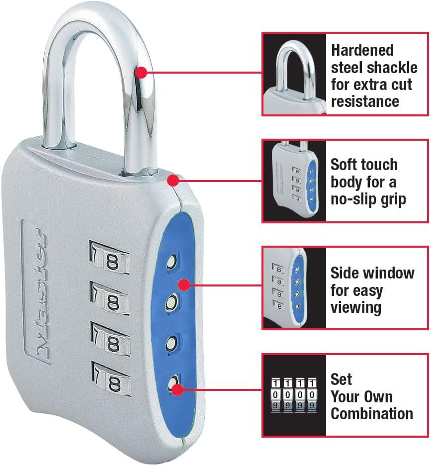 Master Lock Indoor Resettable Combination Locker Lock, 4-Digit Combo Lock for Gym and School Lockers, Colors May Vary, 653D(Resettable Combination)