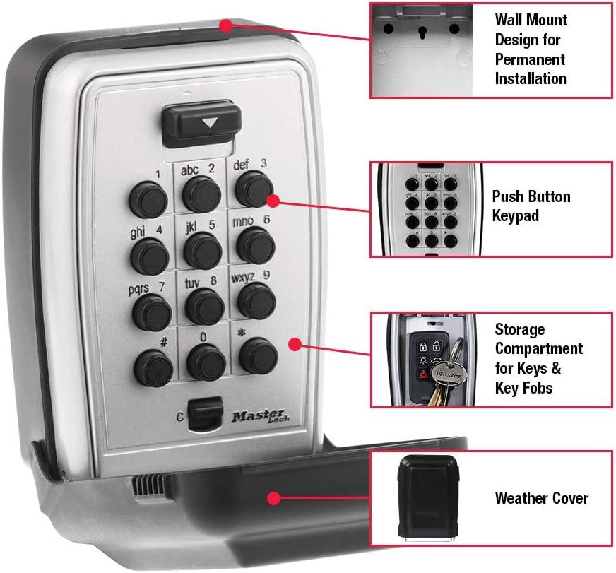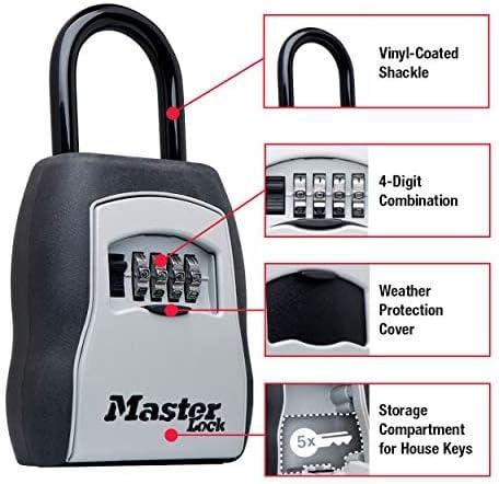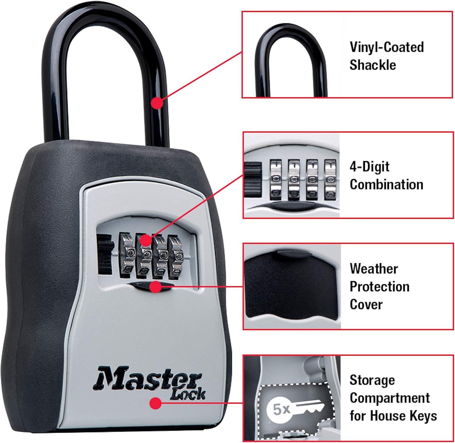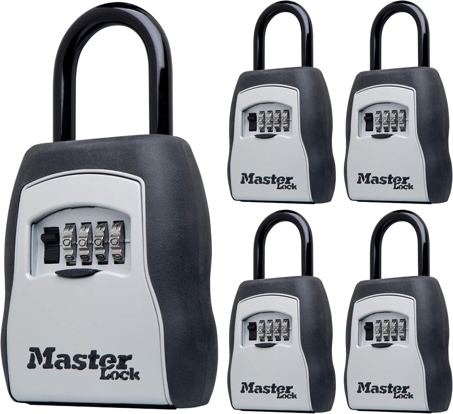 Master Lock Key Lock Box with Code, Outdoor Lock Box for Realtors, Property Managers and Landlords, Ideal for Short-Term Rentals, Key Safe Holds 5 Keys, 5 Pack, 5400EC5(Black)