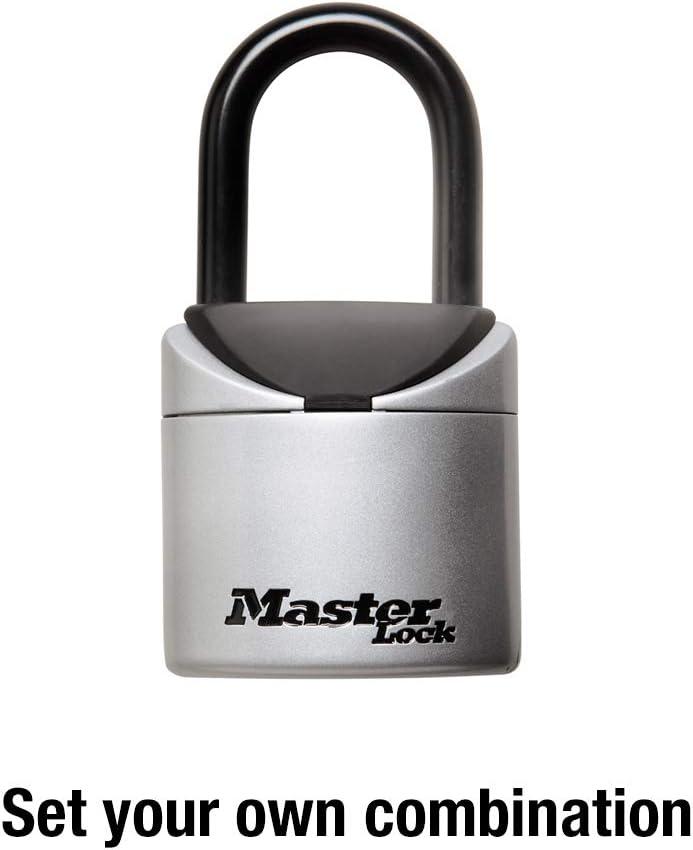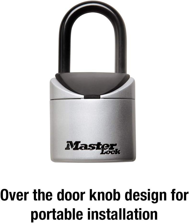 The Master Lock 5400EC5 Set Your Own Combination Portable Lock Boxes features a 3-1/4in (83mm) wide metal body for durability. The portable design offers removable “over the knob” installation. Set your own four-digit combination for keyless convenience and increased security. The shutter door protects combination dials from weather, dirt and grime; and molded body and vinyl coated shackle prevent scratching. Includes five set your own combination lock boxes. The Limited Lifetime Warranty provides peace of mind from a brand you know and can trust.