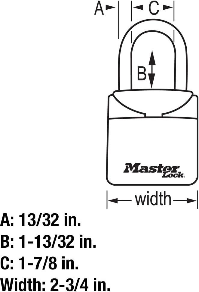 SPECIFICATIONS: Exterior dimensions: 6-1/4 in (158.75 mm) height, 3-1/4 in (82.55 mm) width, 1-1/2 in (38 mm) depth; Lock box shackle is 1-13/32 in (36 mm) long, with 1-7/8 in (48 mm) width, 13/32 in (10 mm) shackle diameter
