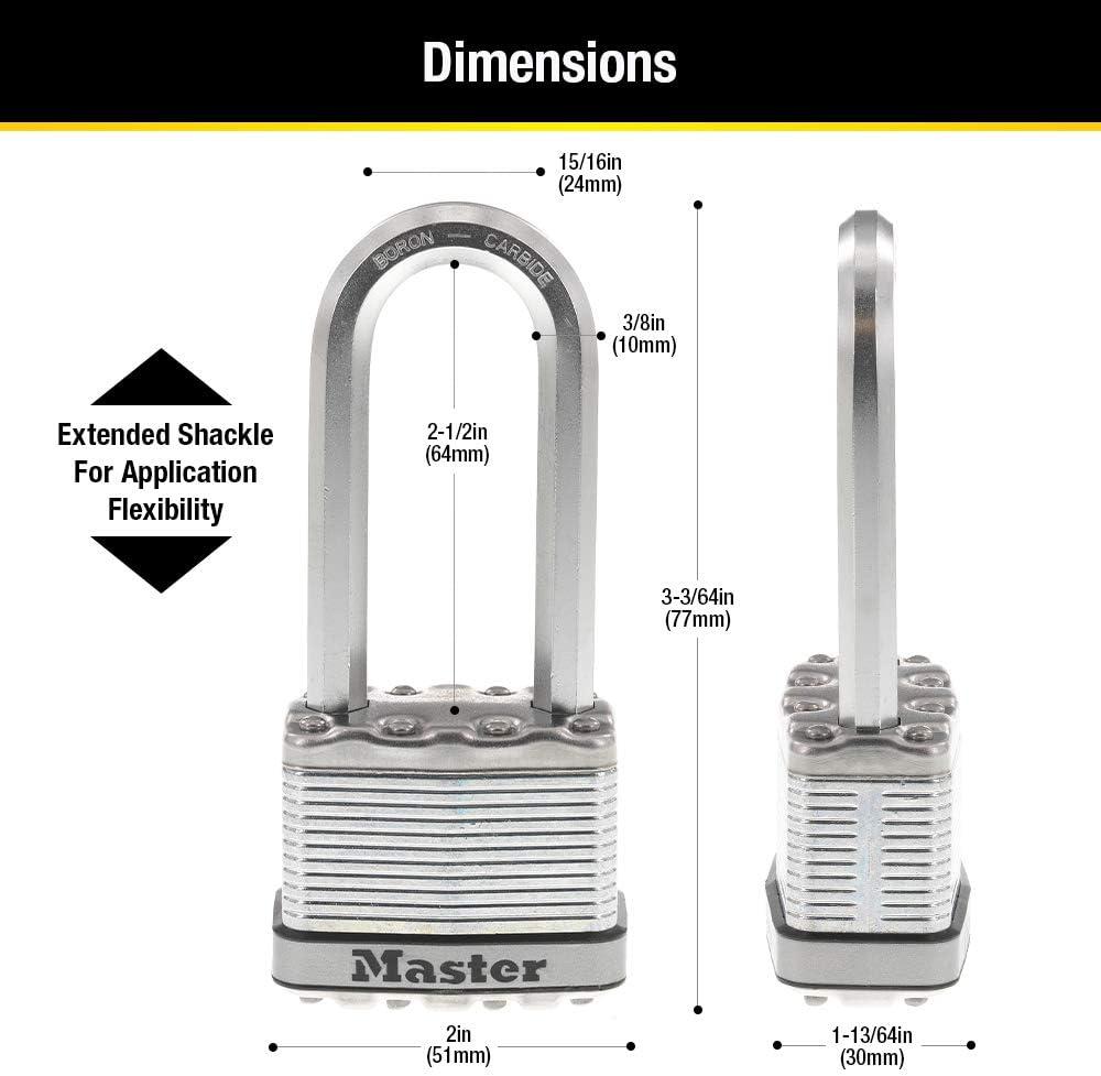 Master Lock M5XTLJCCSEN magnum steel keyed padlocks offer strength, weather protection and versatility. They are ideal for use with residential gates and fences, sheds, workshops, garages, storage lockers tool chests and tool boxes.
