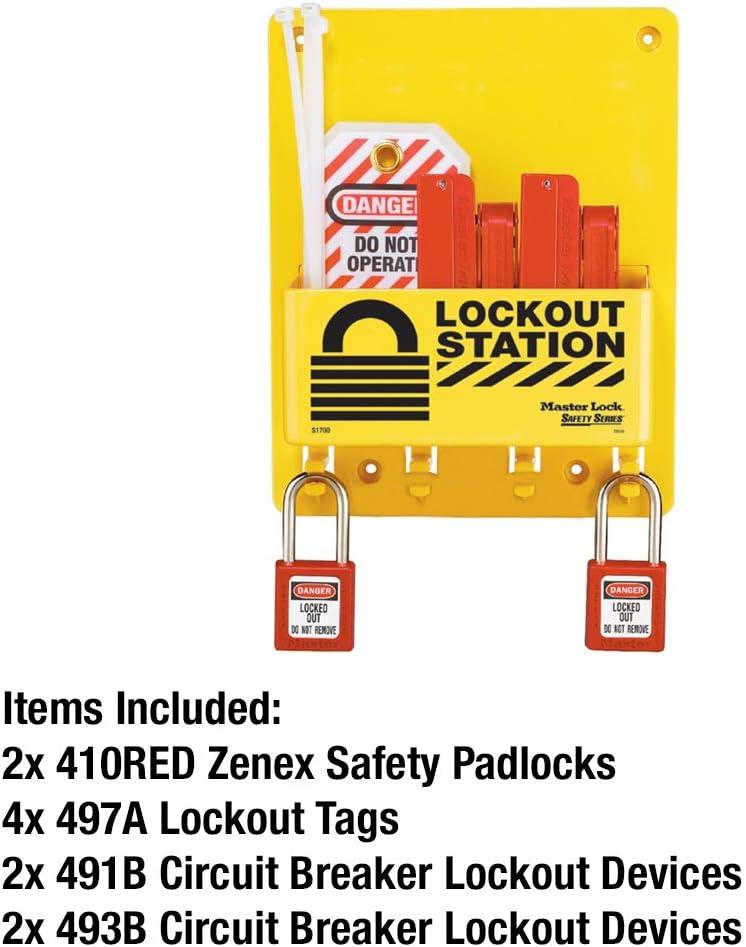 • Master Lock S1850E410 Lockout Tagout Padlock & Electrical Station(Includes 6 Zenex Padlocks)