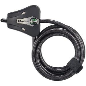 • Master Lock Black Python Bike Lock with Key, Adjustable Metal Cable Lock has a Weather Resistant Vinyl Coating for Outdoor Equipment, Bicycles, Trail Cameras, 6 Feet Long, 8418D(Black)